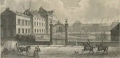 The Markgräflerhof is a baroque palace in Basel, Switzerland, built by the margraves of Baden-Durlach, who used it as an extraterritorial residence as their principality including its residences was often the victim of wars and armies. The margraves had several residences in Basel, but the construction of current palace started under margrave Frederick VII in 1698 when a fire destroyed the previous building. The palace was ready to moved in by 1705. The architect was an entrepreneur Augé who based himself on plans from a book by the French architect Charles Daviller. Frederick VII's successor Charles III William also often used the palace. But afterwards, the margraves predominantly resided in Karlsruhe. The city of Basel purchased the palace in 1807 and the University Hospital of Basel has used the building since 1842.