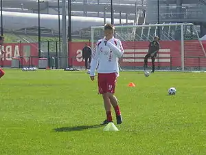 When the 2006–07 season began, Rosenberg played the whole game, as they beat PSV Eindhoven 3–1 to win the Johan Cruyff Shield.[110] However, he was no longer a regular first team player, mostly backing-up Klaas-Jan Huntelaar.[111][112][113][114] He scored three goals in two UEFA Cup appearances against Start.[115][116] Despite being involved in the first team, Roseneberg still could not take Huntelaar's place as the main striker under new coach Henk ten Cate.[11][117][118][119] By the time Rosenberg departed from Ajax, he had made 14 appearances and scored three goals in all competitions.