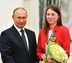 - 1 2 Марьянчик, Наталья (29 July 2021). "Травмированная рапиристка принесла России золото. Драматичный финал, где наша спортсменка не могла встать на ноги". sports.ru (in Russian).