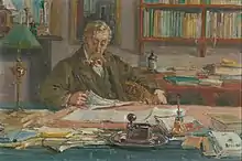 Until her own death in 1931, Massin devoted herself to his legacy and memory. She had their house in Caillou-qui-bique, next to Mons, rebuilt after its destruction during World War I.[5] In 1930, she donated of part of Verhaeren's literary legacy to the Royal Library of Belgium, including copies of his private library, special editions, and unpublished poems. In addition, she undertook to have Verhaeren's study in Saint-Cloud rebuilt.[6] The Cabinet Émile Verhaeren, with its original furniture, is now in display at the Royal Library of Belgium. Massin bequested Verhaeren's entire archive to that same library upon her death in 1931.[2]