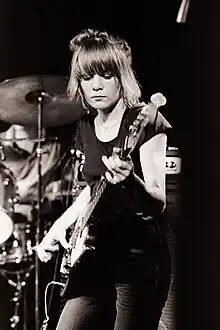 Martina Michèle "Tina" Weymouth (/ˈweɪməθ/ WAY-məth; born November 22, 1950) is an American musician, singer, songwriter, and a founding member and bassist of the new wave group Talking Heads and its side project Tom Tom Club, which she co-founded with her husband, Talking Heads drummer Chris Frantz.[2] In 2002, Weymouth was inducted into the Rock and Roll Hall of Fame as a member of Talking Heads.[3][4]