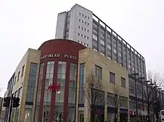 Martineau Place is a shopping centre located in the city centre of Birmingham, England. It contains a mixture of shops and restaurants, with the emphasis on food and drink which is located on the roofs of the shops. Retailers include Sainsbury's, Deichmann, Boots, Argos and Poundland, the upper levels of the centre include a 168-room hotel.