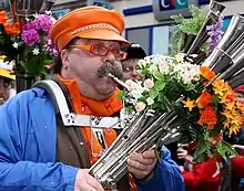 A Martinshorn player at the 2009 Paris Carnival.