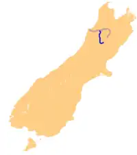 Further downstream, 8 kilometres southwest of Murchison, the Maruia Falls were created by the 1929 Murchison earthquake when a slip blocked the original channel.[2]