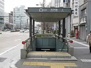 Marunouchi Station (丸の内駅, Marunouchi-eki) is an underground metro station located in Naka-ku, Nagoya, Aichi Prefecture, Japan operated by the Nagoya Municipal Subway.[1] The station is an interchange station between the Tsurumai Line and the Sakura-dōri Line, and is located 6.3 rail kilometers from the terminus of the Tsurumai Line at Kami-Otai Station and 2.4 rail kilometers from the terminus of the Sakuradōri Line at Nakamura Kuyakusho Station.