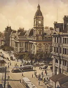 The film acts as a glimpse to the past and the infrastructure that helped it move into the metropolis it is today. Throughout the film, various forms of public and private transport are shown. Particularly the rail system that was developed 20 years before the film's premiere, enabled Ernst Higgins to create the point-of-view shots. With the establishment of electric trams by the North Melbourne Electric Tramway & Lighting Company, electric trams were operating by 1906 spreading across the city by 1910.[12] At the time of filming, Melbourne Tramway & Omnibus Company owned the monopoly over the tram network of the city.[4] Other forms of public transport shown in Marvellous Melbourne include the trains of Richmond station. As shown in the scenes of Richmond station, steam locomotive were the main choice of railway locomotives for the city's rail network.