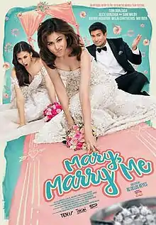 Mary, Marry Me is a 2018 Philippine romantic comedy film directed by RC Delos Reyes and starring Toni Gonzaga, Alex Gonzaga, and Sam Milby.[1][2] It marks the first film to star the Gonzaga sisters, and the reunion project between Toni Gonzaga and Sam Milby, who starred in 2009's Ang Tanging Pamilya: A Marry Go Round.[3] Mary, Marry Me was released on December 25, 2018, as an official entry to the 2018 Metro Manila Film Festival.[4]