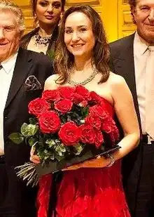 O'Doherty was born in Houston, Texas, to an Australian father and an Armenian mother, Eliza Basmadjian, from Greece.[2] She was educated at North Carolina School of the Arts and East Carolina University from which she received her Bachelor of Music degree in voice and flute performance as well as Bachelor of Arts in psychology in 2005.[3] She was one of the 20 finalists in the 2006 Operatunity Oz talent search.[4] O'Doherty won the ABC Symphony Australia Young Vocalist Award in 2007 and the following year was the first recipient of the Australian International Opera Award which included a scholarship to study at the Cardiff International Academy of Voice under the direction of Dennis O'Neill.[5][4] and was also awarded a prize by the Tait Memorial Trust to assist with her studies in Cardiff.[6] Shortly after completing her post-graduate diploma there in 2010, she sang the title role in Lucia di Lammermoor at the Prague State Opera and reprised the role with the company the following season. In November 2011, she made her Royal Albert Hall debut as a concert artist performing in Raymond Gubbay's Classical Spectacular.[7]