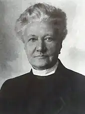 Back in England, Brodrick entered College Hall, London in 1888 where she studied at University College London under Stuart Poole (co-founder with Amelia Edwards of the Egypt Exploration Society) and Peter le Page Renouf. She did not enter for a University of London degree due to her prior studies.[6] She was a member of the Committee of Philology and Literary Archaeology of the World's Columbian Exposition in Chicago 1893 and did work in America for the Egyptian Exploration Fund. She was awarded the degree of Doctor of Philosophy in 1893 by the College of the Sisters of Bethany, University of Kansas, the same institution that had also awarded a PhD to Amelia Edwards.[6][7] She lectured at the British Museum and studied Egyptology under Flinders Petrie in 1893–94 and 1894–95.[5] She held the Pfeiffer Fellowship of College Hall from 1894 to 1896. In 1896, she was elected a life member of the Bibliothèque nationale, Paris, and a life member of College Hall, London.[6]