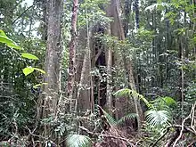 The 55-hectare reserve consists of subtropical rainforest.[2] These types of rainforests are mainly located in the north-east parts of Australia. The Cairncross reserve has an area of 530,000 square metres and reaches a peak canopy of 440 m. The main species of tree is the Australian red cedar. Strangler figs and fungi are some of the environmental elements that the rainforest needs to survive. The red-legged pademelon can be found at the park.[3]