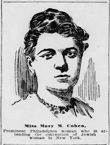 Mary M. Cohen (pen name, Coralie; February 26, 1854 – July 2, 1911) was an American social economist, journalist, belletrist, educator, communal worker, and proto-feminist of the long nineteenth century.[1] She was also an artist, wood-carver, stenographer, typewriter, and a successful teacher.[2]