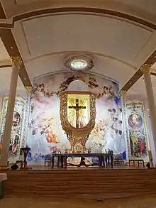 The church soon became inadequate for the growing number of parishioners and in 2011, the church committee, under the leadership of the vicar, Antony Eravimangalam, decided to build a new church complex comprising a new church, rectory and a parish hall.[3] The initial attempt was to construct the parish hall and rectory, which was duly completed in 2015. The service was temporarily shifted to the new parish hall which facilitated the demotion of the old church and the construction of a new one in its place. The ground breaking ceremony was done on 8 January 2016 and the church was consecrated on 8 December 2018 by Jacob Manathodath, the Apostolic Administrator of the Syro-Malabar Catholic Major Archeparchy of Ernakulam-Angamaly.[3]