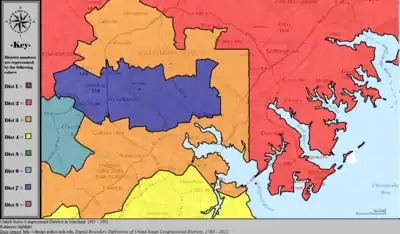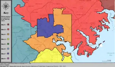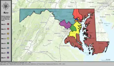 Table of United States congressional district boundary maps in the State of Maryland, presented chronologically.[5] All redistricting events that took place in Maryland between 1973 and 2013 are shown.