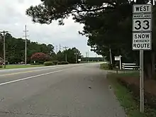 The portion of present-day MD 33 between Easton and Saint Michaels was designated one of the original state roads when the Maryland State Roads Commission laid out the original state road system in 1909.[5] However, the Easton–Saint Michaels road was not considered a necessary component of the system, so construction in its modern form was delayed in favor of the Easton–Wye Mills road.[6] A 2-mile (3.2 km) section of the road between the eastern intersection with MD 329 and MD 370 was paved by 1910.[7] The first sections of modern MD 33 constructed by the State Roads Commission were between Saint Michaels and Claiborne, which became the terminus of the Claiborne–Annapolis Ferry in 1919. Sections were completed between the two villages in 1919 and 1920.[5][8] A section of the highway was also completed between Easton and the MD 370 intersection in 1920.[5] The Easton–Claiborne Road was completed in 1924.[9] When numbers were assigned to certain state highways beginning in 1927, the road was designated MD 17.[10]