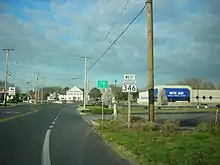 Maryland Route 346 (MD 346) is a state highway in the U.S. state of Maryland. The state highway runs 23.72 miles (38.17 km) from U.S. Route 50 Business (US 50 Business) in Salisbury east to US 50 in Berlin. MD 346 is the old alignment of US 50 between Salisbury and Berlin, connecting those cities with Parsonsburg, Pittsville, and Willards in eastern Wicomico County and Whaleyville in northern Worcester County. Much of what is now MD 346 was built as the original state road between Salisbury and Ocean City in the mid-1910s. The highway was designated US 213 in 1927 and changed to US 50 in 1949. MD 346 was first applied to Church Street in Salisbury in the 1940s; this designation was removed in 1954. MD 346 was reassigned in the mid-1960s to the old alignments of US 50 left behind after US 50's bypass of Berlin opened in the late 1950s and the US 50 divided highway was completed between Salisbury and Berlin in the mid-1960s.