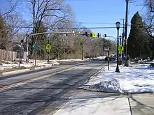 MD 547 begins as an intersection with MD 355 (Rockville Pike) opposite the entrance to Georgetown Preparatory School in North Bethesda. The state highway heads east as Strathmore Avenue, a two-lane undivided road that passes the grounds of Strathmore, which features a namesake mansion and music center, to the south. After passing the Academy of the Holy Cross, MD 547 enters the town of Garrett Park. The highway passes through the Garrett Park Historic District several blocks to the south of the Garrett Park station on MARC's Brunswick Line. After serving as the town's main street, MD 547 veers southeast and its name changes to Knowles Avenue. The route enters Rock Creek Park, where the highway traverses Rock Creek and intersects Beach Drive. At its junction with Summit Avenue, MD 547 enters the town of Kensington, where it reaches its eastern terminus at MD 185 (Connecticut Avenue). Knowles Avenue continues east for a block before ending at Armory Avenue in the Kensington Historic District.[1][2]