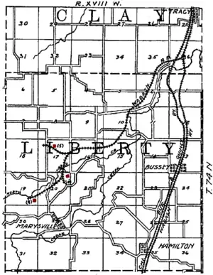 A five-foot bed of coal was exposed along North Cedar Creek about 2 miles north of Marysville, and by 1867, several coal banks were open in the Marysville area and Jacob Kline had opened a mine about a mile north of Marysville, where the coal was 10 feet thick. By 1908, eleven different mines had been worked in the Marysville area, primarily by the Mammoth Vein Coal Company, which took over from the O.K. Coal Company in 1903. The Wabash Railroad built a 7-mile spur line to serve the mines.[7]