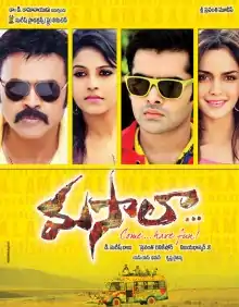 Masala is a 2013 Indian Telugu-language action comedy film directed by K. Vijaya Bhaskar. It is produced by D. Suresh Babu and Sravanthi Ravi Kishore on Suresh Productions and Sri Sravanthi Movies. The film stars Venkatesh, Ram Pothineni, Anjali and Shazahn Padamsee with music composed by S. Thaman.[4] It is a remake of the 2012 Hindi film Bol Bachchan [5] The film released worldwide on 14 November 2013.[2] Upon release, the film received mixed reviews from critics with appreciation to the cast performances.[6]