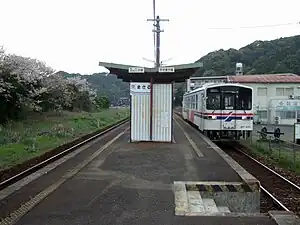 Trains on this branch terminate at either Saza or Sasebo. Travellers can transfer at Saza for local trains to Imari, and then on to Arita. The rapid service between Saza and Sasebo does not stop here. It is 77.7 km from Arita.[5]
