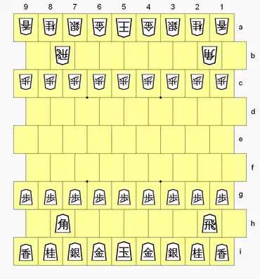 All normal shogi rules apply, including initial setup (see diagram), drops, promotion, and so on. The pieces, however, have specially defined moves.
