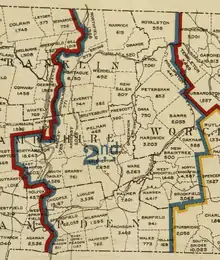 The shape of the district was changed for the elections of 2012, after Massachusetts congressional redistricting to reflect the 2010 census.[3] The new district covers central Massachusetts, including much of Worcester County, and is largely the successor to the old 3rd District. Most of the old 2nd district, including Springfield, has been moved into the new 1st district.