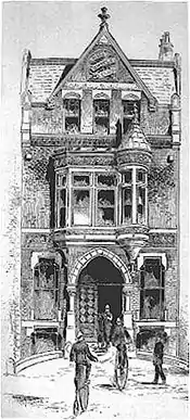 Architect George F. Meacham designed a new headquarters building for the club in 1884, located at 152 Newbury Street in Boston.[2][3] By 1885, the club had "established a small repair-shop in its wheel-room, with a small assortment of parts and sundries of prominent makes, for the convenience of members."[4]