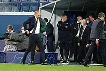 On 2 November, he featured in his 100th Champions League match in a 2–1 home defeat against Paris Saint-Germain.[59] The match against PSG was Juventus' last Champions League match of the season; the team made their worst-ever Champions League campaign, having won only three points, from a victory and five defeats, with 13 goals conceded during the group stage.[60] For the first time since 2013–14, Juventus placed third in the group stage, because of a better goal difference with Israelian team Maccabi Haifa, obtaining access to the UEFA Europa League.[60] In the same month, Allegri won the Serie A Coach of the Month award, following to three league victories to Inter, Hellas Verona and Lazio.[61]