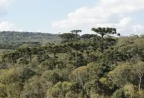 The ESEC is in the Atlantic Forest biome.[2] Vegetation is mainly mixed rainforest. The three sections of forest are in different stages of regeneration. One of them is well-preserved and holds an immense stand of Araucaria angustifolia, with tree species in the under story typical of the primary forest formation such as Ocotea porosa, Sloanea lasiocoma and Ilex paraguariensis. The other two fragments show the impact of human activity, with clearings in which there are different stages of succession growth. However, they contain rare and endangered tree species.[4]