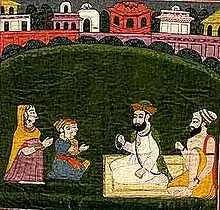 ![]() Sulakhni seated beside Guru Nanak in a circa 1780 painting from Mandi | |