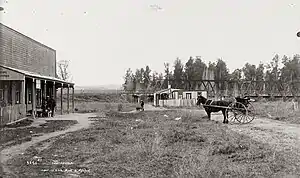 Puketapu was recognised as a potential source of totara as early as 1903[12] and the company was advertising for bush cutting[13] and construction of a 1.5 mi (2.4 km) tramway in 1905.[14] The sawmill must have been operating by 1906, when they experimented with floating sawn timber down the river.[15] Another sawmill was also operating nearby in 1906,[16] which possibly the company had taken over by 1908,[17] when the tramway extended for 5 mi (8.0 km).[18] The company was in liquidation in 1909,[19] but was taken over by Pukuweka Sawmills. The bush tramway was linked to the main line and had two locomotives in 1911.[20][21] The last year the mill was recorded as using the railway siding was 1915.[22]