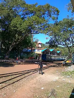 The station is at an elevation of approximately 2,625 feet (800 m) in the Western Ghats.[1] As no automobiles are allowed in Matheran it provides the sole mechanised means of transport, the alternative being walking or horseback from the previous station Aman Lodge,[2] some 3 km distant.[3]