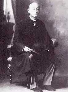 Count Matsura Akira (松浦 詮, November 11, 1840 – April 13, 1908) was the 12th and final daimyō of Hirado Domain in Hizen Province, Kyūshū, Japan. He was also the 37th hereditary head of the Matsura clan, and a noted tea master. His honorary title was. Hizen-no-Kami.
