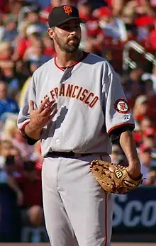 Matthew Christian Morris (born August 9, 1974) is an American former professional baseball player. He played in Major League Baseball as a right-handed pitcher from 1997 through 2008, most notably as a member of the St. Louis Cardinals, where he was a two-time All-Star and led the National League in 2001 with 22 wins. After playing nine seasons with the Cardinals, he played his last four seasons with the San Francisco Giants and the Pittsburgh Pirates.