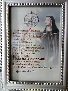 Blessed Mattia de Nazarei (1 March 1253 – 28 December 1319) was an Italian Roman Catholic nun of the Poor Clares.