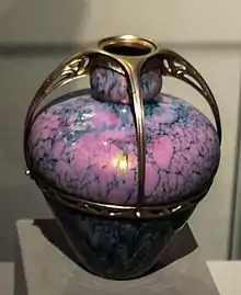 Dufrêne designed the Maîtrise exhibit of the 1925 International Exposition of Modern Industrial and Decorative Arts in Paris.[5] The pavilion itself was designed by the architects J. Henart, G. Tribout and G. Beau. Dufrêne decorated the interior with painting on the walls and ceiling, hanging lights, narrow metal railings and decorative objects. Every element illustrated the Art Deco objective of developing a new style.[7] He produced designs for Christofle, a large firm that manufactured high-quality Art Deco metalwork in the 1920s and 1930s.[8] He remained busy throughout the 1930s.[1]