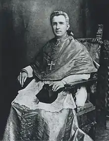 By 1889, the diocese had five priests and 5,000 parishioners spread over a huge area.[4] In addition, he faced attacks by the American Protective Association, an anti-Catholic and anti-Irish hate group. The virulence forced the Sisters of Charity to abandon their institutions in the diocese. Burke travelled to Rome to petition the Vatican to attach the diocese to a more established one, citing the dire conditions in Wyoming. The pope denied his request.[5] [6] In a letter to Katherine Drexel, Burke described himself as a "bishop in name only" without parishioners or priests.[7] In 1893, Pope Leo XIII attached the Diocese of Cheyenne to the ecclesiastical province of Dubuque, and transferred Burke to another diocese.