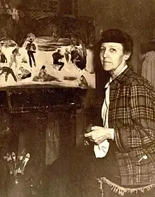 Gilruth worked primarily in pencil, watercolors, woodcuts and oil paints. She was most active in the 1930s to the 1950s, appearing in four major exhibitions,[2] including The Art Institute of Chicago in 1945.[3] She was a member of the National Association of Women Artists, Washington, DC.[1]