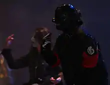 During the opening date of the festival on July 9, Sid Wilson the turntablist of Slipknot broke both of his heels when he jumped from an elevated area of the stage and landed incorrectly. Despite the injury, he promised to perform on all dates of the tour even in a wheelchair.[3] With both his legs in casts he returned with the band on the second date of the festival on July 12 in a wheelchair, he has however performed without it (he was seen on August 10 with the chair on stage and included it into the act).[4] Throughout the tour, he has been seen to repeatedly slip out of the wheelchair in order to crawl across the stage and climb upon the set pieces and drum set. His 'Moon Boots' as Corey Taylor calls them, are displayed to the audience at some point during the set.