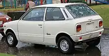 The Mazda Chantez (chassis code KMAA) is a two-door kei car that was introduced by Mazda in July 1972. The Chantez had a longer wheelbase at 2,200 mm (86.6 in) than most of its competitors and featured the powerful two-stroke "AA" engine also seen in the Porter. With 35 PS (26 kW; 35 bhp), top speed was 115 km/h (71 mph) and the 400 m (0.2 mi) sprint was dispatched in a sprightly 20.6 seconds.[1] In more recent testing (early 2000s) of a 1972 GF II, 0–100 km/h came up in 35.8 seconds.[2] The engine was installed longitudinally in the front of the vehicle powering the rear wheels, and the spare tire was installed next to the engine on the right side.[3][4]