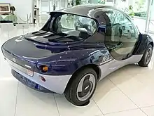 The Mazda HR-X was a small concept car developed by Mazda a their plant in Aki District, Hiroshima to showcase the use of hydrogen fuel as a possible environmentally friendly alternative for automotive transport.[1] The cabin accommodated four people who entered via gull-wing doors.[2][3] It was constructed of plastic and designed to be nearly completely recyclable. The car was 3,850 mm (151.6 in) long and 1,700 mm (66.9 in) wide, with a maximum height of 1,450 mm (57.1 in). Weight was 1,260 kilograms (2,778 lb).[3]