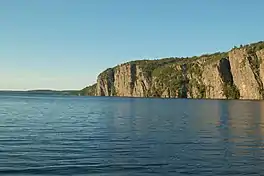 Lake Mazinaw is a lake in the Addington Highlands north of Kaladar in Eastern Ontario. The lake is situated on the upper Mississippi River. It has a perimeter of 49 km (30 mi)[1] and averages 41 m (135 ft) in depth with a maximum depth of 145 m (476 ft), making it the seventh-deepest lake in Ontario, including the Great Lakes. There is a narrows which divides the lake into two sections: South Mazinaw, and North Mazinaw, with North Mazinaw being larger and deeper.