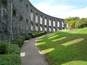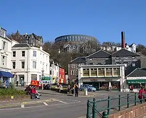 McCaig's Tower,[1] also known by tourists (but never by locals) as McCaig's Folly,[2] is a prominent tower on Battery Hill[3] overlooking the town of Oban in Argyll, Scotland. It is built of Bonawe granite taken from the quarries across Airds Bay, on Loch Etive, from Muckairn, with a circumference of about 200 metres (660 ft) with two-tiers of 94 lancet arches (44 on the bottom and 50 on top). It is a Grade B Listed historic monument.