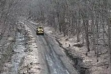 McMickle Cut is the longest cut on the Lackawanna Cut-Off railroad line in northwest New Jersey. It was built between 1908 and 1911 by contractor Timothy Burke between mileposts 47.1 and 48.1 where Stanhope and Byram Township meet. Some 600,000 cubic yards of material was removed by dynamite and other methods to make the cut, which is 1.04 miles (1.7 km) long, has an average depth of 29 feet (8.9 m), and a maximum depth of 54 feet (16.6 m). [1]