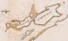 The island saw seasonal Mi'kmaq and Acadian use and was surveyed by the French Navy as a possible site for a fortified seaport prior to the selection of Louisbourg. After the founding of Halifax in 1749, it was first known as Cornwallis Island. One of the early settlers was Joseph Rous (1758), brother of John Rous.[2][3] Halifax merchant Joshua Mauger used the long beach which still bears his name as a base for a fishing operation in the 1750s and 1760s.[4]
