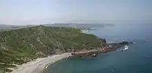 This stony beach is less well-known or accessible than other beaches in the area, and as such is less frequented. It is, however, well known to surfers, and is reputed to have Europe's biggest waves, often swelling to 6 m. A very dangerous surfing beach, it is best left to expert surfers.