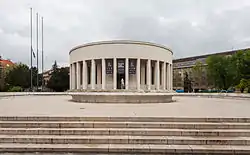 The Meštrović Pavilion (Croatian: Meštrovićev paviljon), also known as the Home of Croatian Artists (Croatian: Dom hrvatskih likovnih umjetnika) and colloquially as the Mosque (Croatian: Džamija), is a cultural venue and the official seat of the Croatian Society of Fine Artists (HDLU) located on the Square of the Victims of Fascism in central Zagreb, Croatia. Designed by Ivan Meštrović and built in 1938, it has served several functions in its lifetime. An art gallery before World War II, it was converted into a mosque under the Independent State of Croatia and was subsequently transformed into the Museum of the Revolution in post-war Yugoslavia. In 1990, it was given back to the Croatian Association of Artists. After extensive renovation, it has served as a space for exhibitions and events since 2006.
