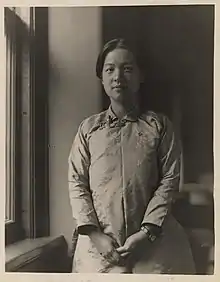When she was a small child, her parents, in the proper Chinese tradition, arranged for her betrothal. She attended the McTyeire School in Shanghai where she became a Christian. At the age of 15, she was taken out of school to be married. She would not consent to the marriage and her father was greatly displeased and refused to accept her decision. Her older brother sympathized with her and secretly took her from their home in Shanghai to Hong Kong. From Hong Kong, she went to the United States.[7] She was a Tsinghua (Qinghua) special student and attended Mount Holyoke College from 1914 to 1916, preparing for medical school.