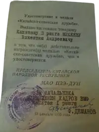 - ↑ "Медаль «Китайско-Советская дружба»". kommynist.ru. Retrieved 2021-04-30.