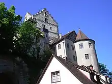 Meersburg Castle (German: Burg Meersburg), also known as the Alte Burg (English: Old Castle), in Meersburg on Lake Constance in Baden-Württemberg, Germany, is considered to be one of the oldest inhabited castles in Germany. The central tower was first built during the 7th century, though the original structure is no longer visible. Burg Meersburg is known as the old castle, in the reference to the neighboring 18th century New Castle.