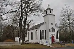 North Guilford was an agricultural outpost of the town of Guilford from its early settlement. In 1705, land was set aside for a common, and in 1717 land was allocated for a meeting house and cemetery. The local population was at the time strongly Congregationalist, and the town levied church taxes that supported the Congregational church that was built there. In 1747, a segment of the North Guilford population formally declared itself for the Church of England, and built a second church at a location to the south. These adherents objected to the church tax, leading to acrimonious disputes in the town. In the early 19th century, a spirit of reconciliation prevailed, and the Congregationalists agreed to permit the Episcopalian successors to the Anglicans to build their church on land adjacent to theirs.[2]